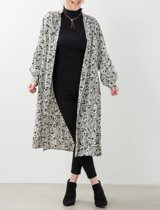 軽くて、暖かくて、そして美しい。理想の冬アウターがここに。 しっかり暖かな裏ボア素材やロング丈がうれしい、裏ボア使いプリントロングコート。 シックな花柄もおしゃれなコートは、裾の紐を絞ってコクーンシルエットも楽しめます。