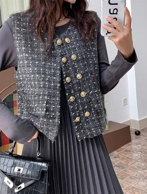 ノスタルジックな温もりと、洗練された佇まいを一枚に。 しっとりとしたニット素材が肌になじみ、レトロな雰囲気を優雅に演出します。 フロントにはクラシカルなボタンが並び、ドレススタイルに落ち着いたアクセントを加えます。