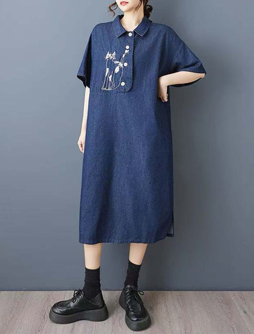 カジュアルでありながら可愛らしさを演出してくれるワンピース。 胸元を飾るネコの刺繍がアクセントとなり、シンプルなデザインに遊び心を加えてくれる一着。 ゆったりとしたシルエットで、着心地の良い肌触りは抜群です◎