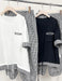トップスは裾、袖口、ポケット口にチェック柄をあしらい、さりげないアクセントに。