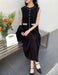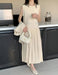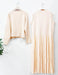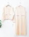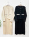 カーディガンは程よいフィット感で体型を美しく見せ、ワンピースのプリーツが歩くたびにエレガントな印象に。