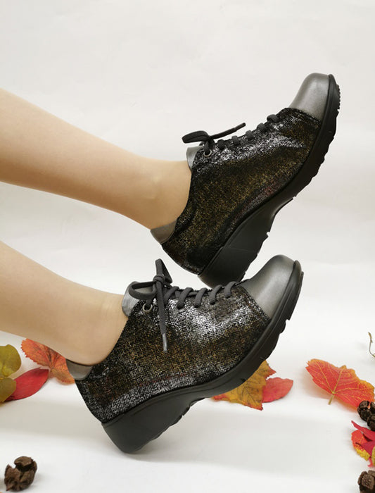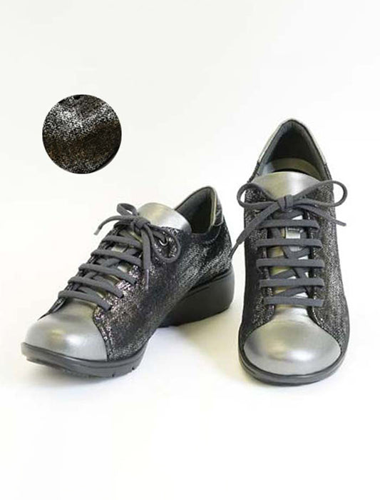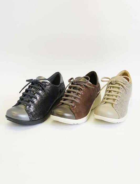 洗練されたデザインと快適な履き心地を両立させた軽量グリッターレースアップスニーカー。