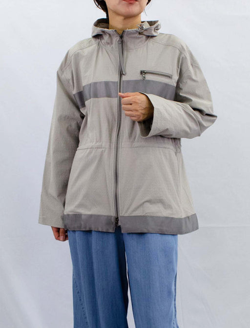 スポーティーな配色ラインがアクセントになったフード付きコート。<br>袖に施されたラインデザインが目を引き、カジュアルながらも洗練された印象を演出します。<br>ゆったりとしたシルエットで、軽やかに羽織れるのも嬉しいポイント。