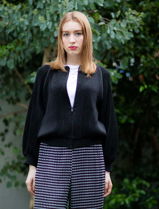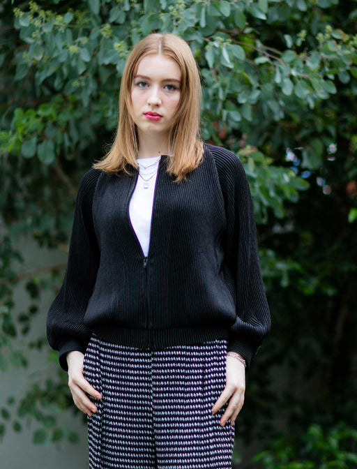 「軽やかに、そして立体的に」唯一無二のプリーツブルゾン。 シャトルプリーツ素材とブラックベースの配色がほどよいカジュアルさを残しながら、モードでエレガンスな雰囲気を醸し出します。 オフィススタイルや休日のカジュアルシーンに、旅先での羽織りにと幅広いシーンで活躍します。