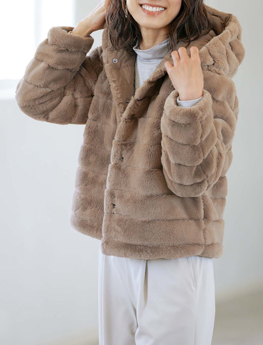 華やぎ感に魅了される、両面主役のリバーシブル。 ふわふわのフェイクファーと、中わた入りキルトの2通り使える優秀アウター。 どちらが表になっても、おしゃれ見えして暖かな着心地。
