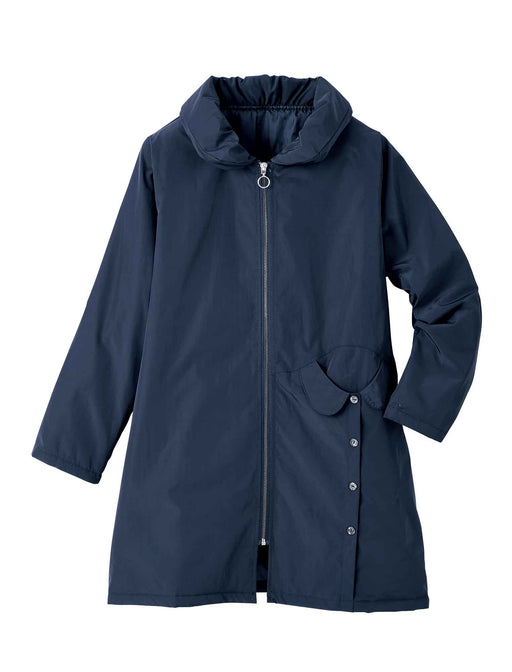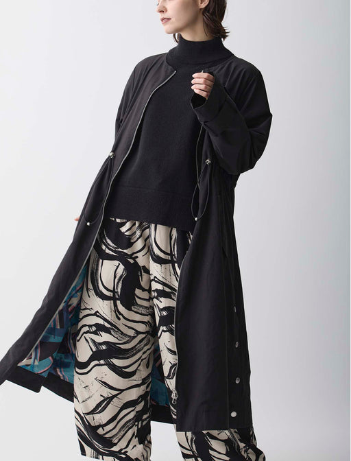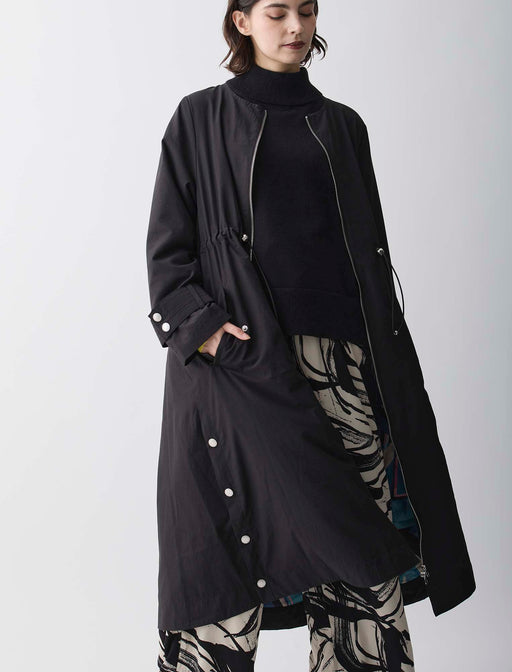 首回りはスタンドデザインであたたか。裾は絞ってシルエット変化もお楽しみ頂けます。 マイクロタフタ素材はサラリとしたマットな質感でホコリが付きにくく、 お取り扱いのしやすさも魅力。軽量で着回しのしやすいデイリーアウターです。