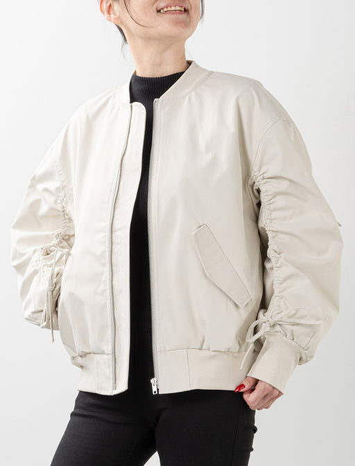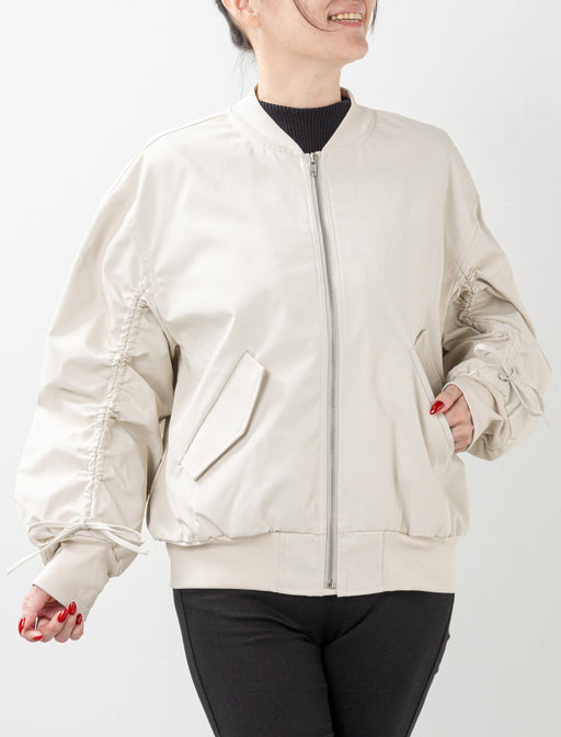 スポーティーなブルゾンを女性らしく。ディテールで魅せる、旬のカジュアルアウター。 袖に施された立体的なシャーリング加工が、ふんわりとしたボリューム感を演出。 カジュアルな印象のブルゾンを、女性らしいディテールで大人の甘辛ミックスにアップデートしました。