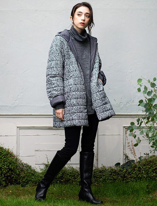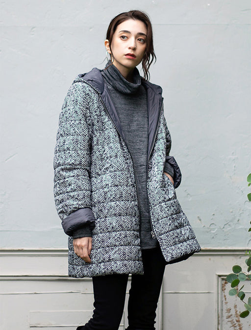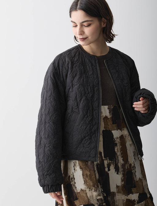 大人の冬スタイルを格上げするショート丈のキルティングダウン。 上品なペイズリー柄は、控えめながら存在感を放ち、装いに深みをプラスします。 中綿はダウンを圧着加工で仕上げることで、軽やかな着心地とすっきりとしたシルエットを両立。