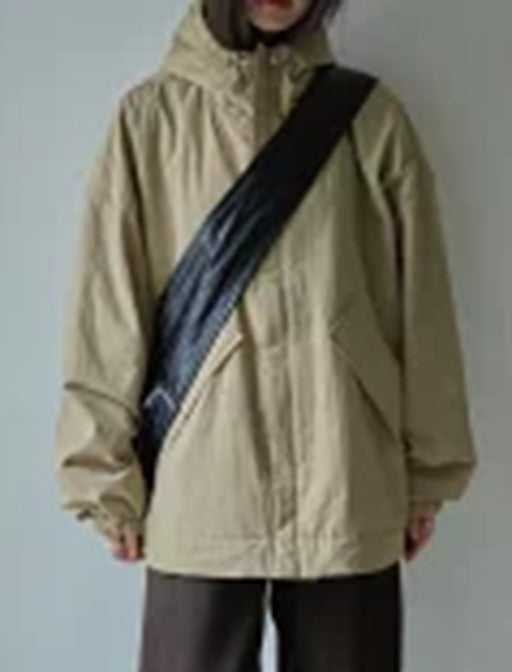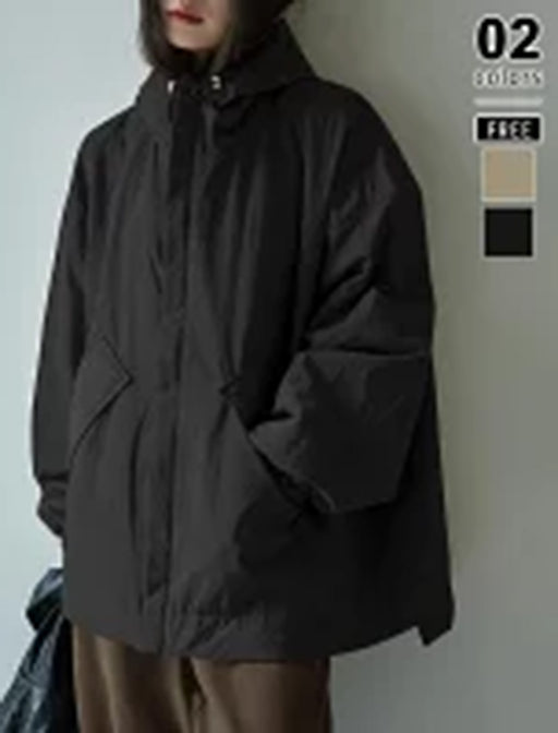 今っぽさと防寒を叶える、大人の冬カジュアル。 厚すぎず軽やかに着られる、オーバーサイズシルエットの中綿ジャケットです。 フードとドローストリング付きで、風を防ぎながらジップアップでさっと羽織れるデザイン。 ポケット付きで実用性も高く、デイリーからアウトドアまで、冬のさまざまなシーンで活躍します。
