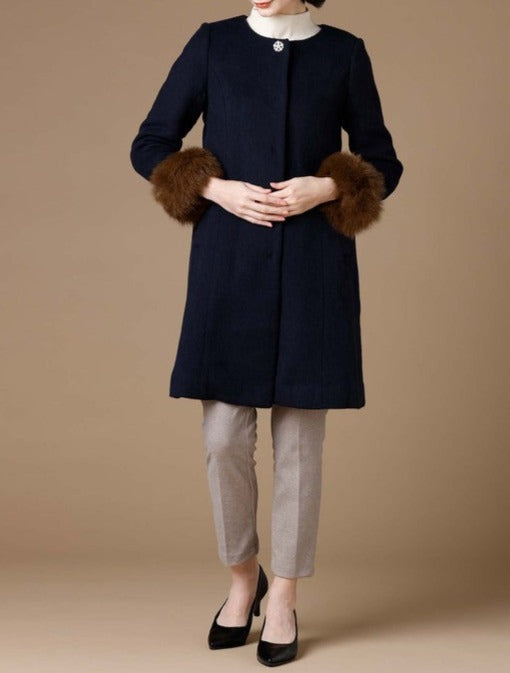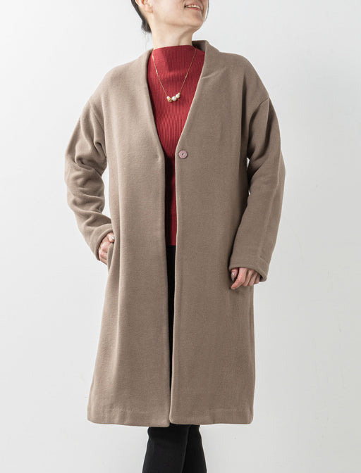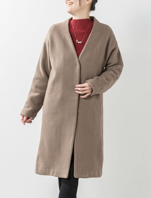 大人の女性の冬の装いを、上品かつ軽やかに格上げするノーカラーコート。 首元がすっきりと開いたノーカラーデザインは、タートルネックやマフラー、ファーティペットなどを合わせやすく、着こなしの幅を無限に広げます。 軽やかな着心地でありながら、しっかりと寒さを防ぎ、冬の外出を快適にサポート。