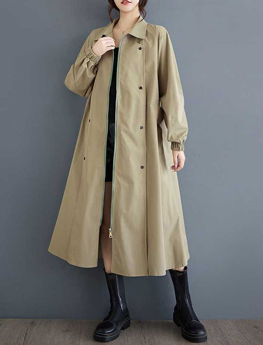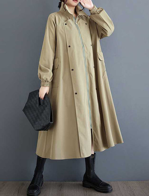 ミニマルな印象を引き立てるノーカラーロングコートに、さりげないディテールが光る一着。 両サイドに配されたドットボタンが動きにアクセントを添え、ウエストのドローストリング仕様でシルエット調整も自在。 大人の余裕を感じさせる、シンプルの中に映える、美しさと遊び心が息づくコートです。