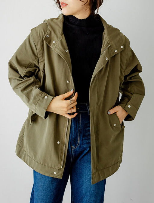 スポーティーな配色ラインがアクセントになったフード付きコート。<br>袖に施されたラインデザインが目を引き、カジュアルながらも洗練された印象を演出します。<br>ゆったりとしたシルエットで、軽やかに羽織れるのも嬉しいポイント。