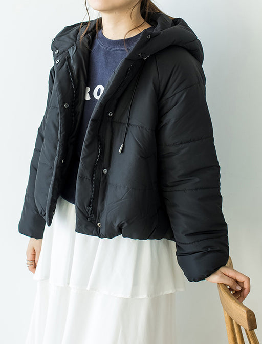 今っぽさと防寒を叶える、大人の冬カジュアル。 厚すぎず軽やかに着られる、オーバーサイズシルエットの中綿ジャケットです。 フードとドローストリング付きで、風を防ぎながらジップアップでさっと羽織れるデザイン。 ポケット付きで実用性も高く、デイリーからアウトドアまで、冬のさまざまなシーンで活躍します。