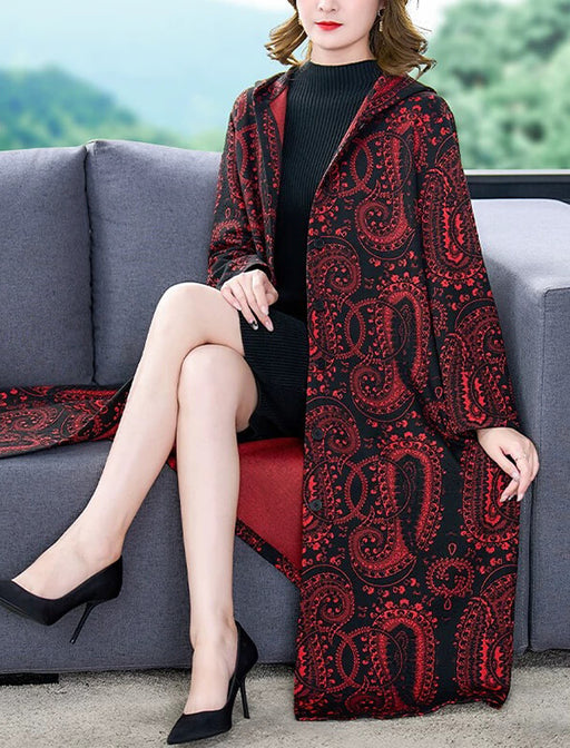 軽くて、暖かくて、そして美しい。理想の冬アウターがここに。 しっかり暖かな裏ボア素材やロング丈がうれしい、裏ボア使いプリントロングコート。 シックな花柄もおしゃれなコートは、裾の紐を絞ってコクーンシルエットも楽しめます。