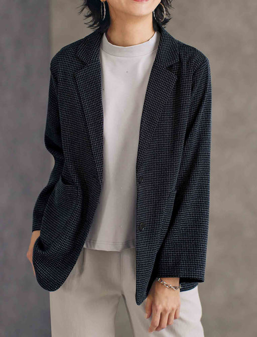 見ためより着心地の軽さとやわらかさに驚いて。 三色の糸でつくる変わり織テーラードジャケット。 きちんと着映え力を発揮しながらもソフトな風合いで、軽やかに羽織れます。