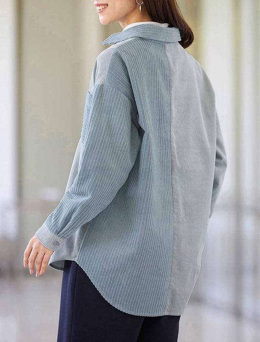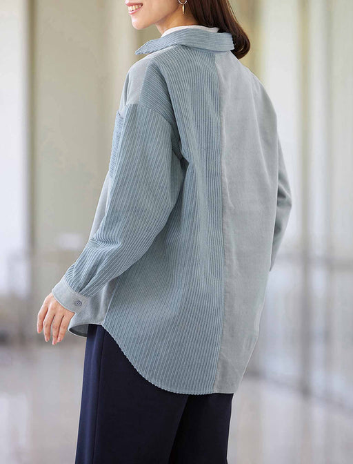 遊び心を効かせた、コーデュロイシャツジャケット。 優しい配色や畝のピッチが異なるコーデュロイを使い、アシンメトリーに切り替えたデザイン。 風合いが良く、ジャケット代わりの羽織りとしても活躍します。