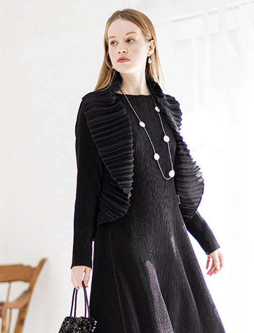 立体的で美しいドラマティックなフェイドアウトプリーツジャケット。 意匠を凝らしたプリーツテクニックで、シンプルなシルエットでもクチュール感ただよう1着に。 光と影が織り成す繊細な陰影と、立体感を湛えたプリーツの表情をお楽しみいただけます。