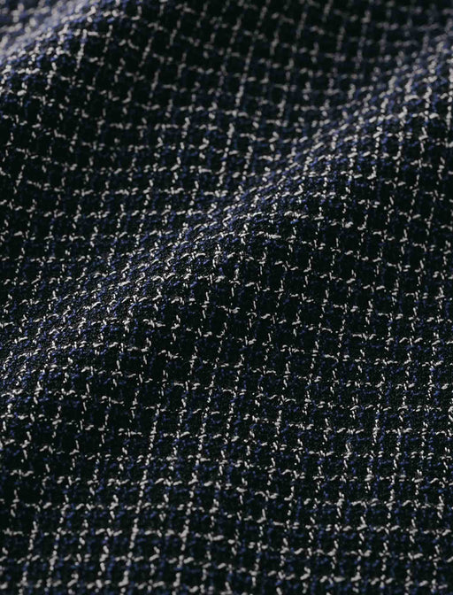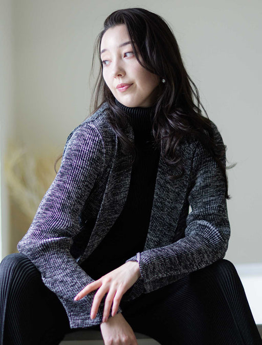 凛とした気品と優しさをまとうシックなジャケット。 伝統織物「三河木綿」のジャケットは、いくつもの色を重ねた深い彩りが特徴。 背中のタックが広がるゆったりシルエットながら正面は凛とスマートで、くるみボタンを開けても閉めても上品に決まります。