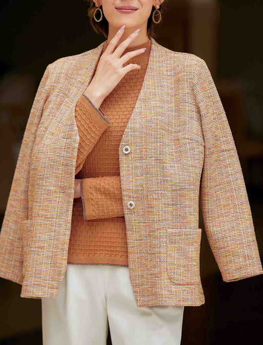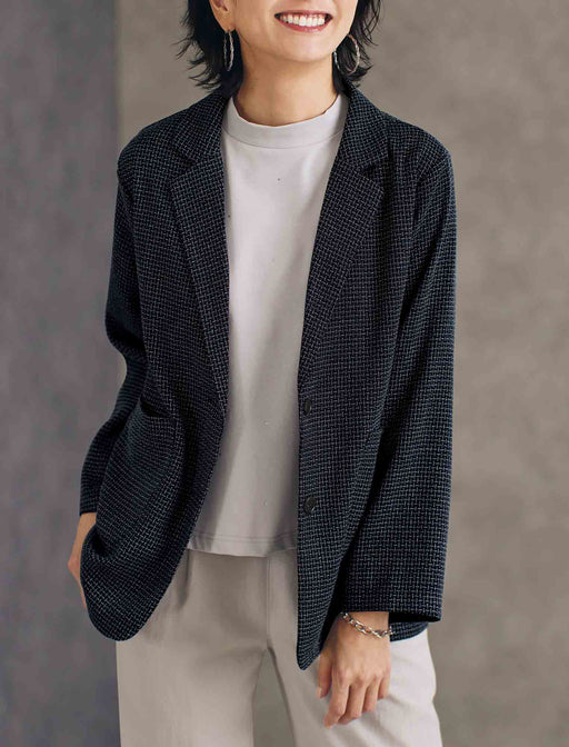 見ためより軽い着心地と柔らかさに驚く。 ツイードのような表面感の変わり織テーラードジャケット。 きちんと着映え力を発揮しながらもソフトな風合いで、軽やかに羽織れます。