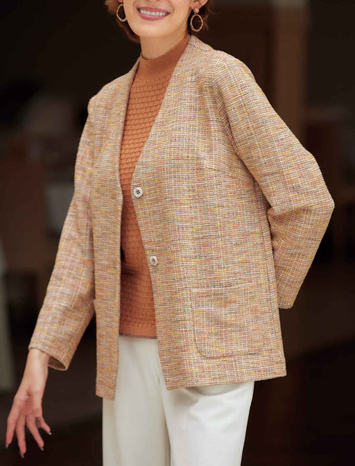 シーンが華やぐ美彩色エレガンス。 綺麗な彩りにほんのりラメも煌めいて、顔映りを明るくしてくれるツイードジャケット。 ストレッチが効いて動きやすく、エレガントに着映えます。