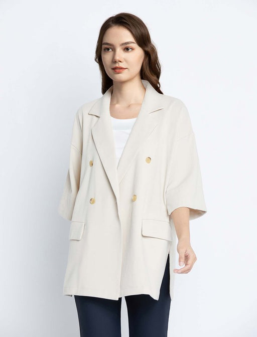 気負いなく羽織るだけで、颯爽と決まる大人のモードスタイル。 トレンドのピークドラペルに、身幅に程良くゆとりを持たせたダブルブレストデザイン。 メンズライクなルックスを持ちつつ高め位置でウエストをやや絞った女性らしいシルエットが魅力です。 お揃いになるパンツやロングスカートを合わせて、マニッシュ...
