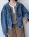 フロントに施したモチーフデザインが目を惹くデニムジャケット。