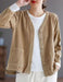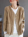 カジュアルなイメージが強いコーデュロイを、すっきりとしたノーカラー(襟なし)で上品に仕上げました。