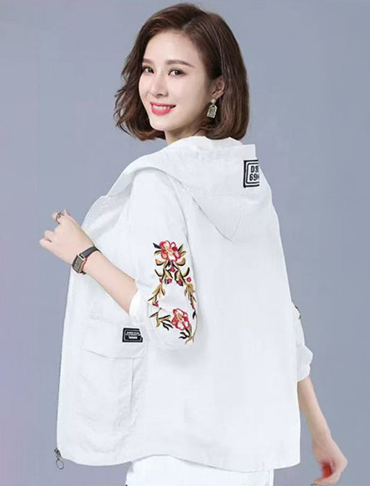 袖には繊細な刺繍が施され、シンプルな中にも華やかさをプラス。