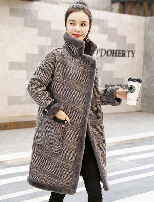 暖かな裏ボア(フェイクファー)仕様で真冬も快適に過ごせるロングコート。 上品なグレンチェック柄に、襟元や袖口のボアが華やかさをプラス。 すっぽり体を包むIラインシルエットで、エレガントな防寒スタイルが完成します。