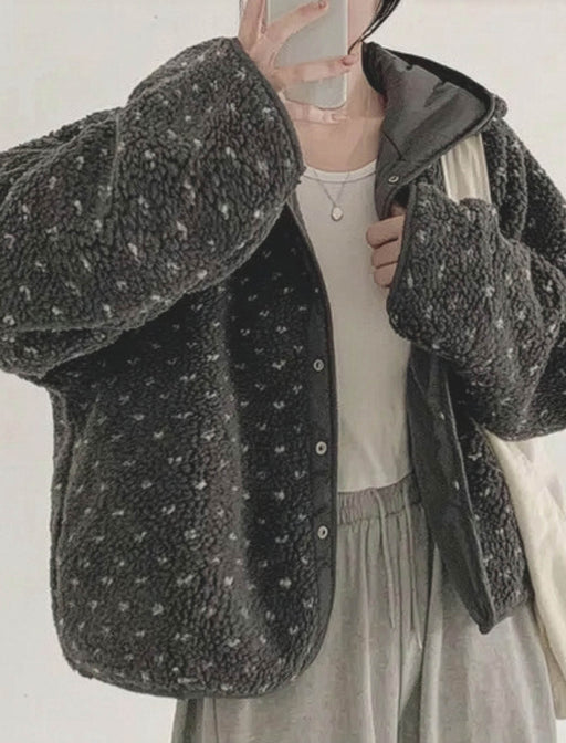 「暖かボアのモードな一枚」 ゆったりとしたケープシルエットが、こなれ感と動きやすさを両立させる上品なアウターです。 動くたびに表情を変えるドレープと、コントラストの効いた配色が、周りと差をつけるスタイリングを叶えます。