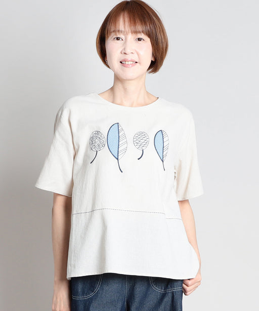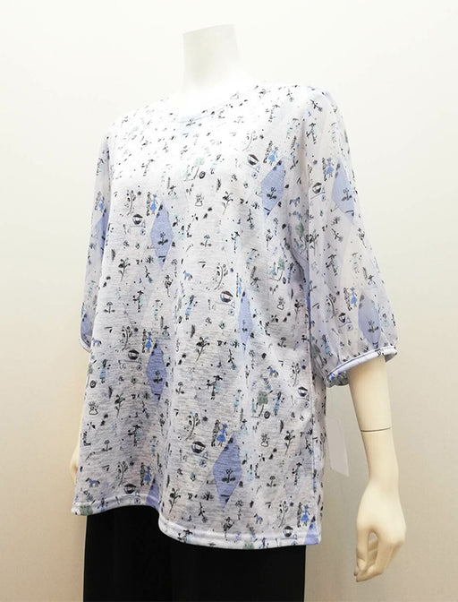 さらりとした肌ざわりが心地よい強撚綿素材を使用。<br>繊細で上品な花柄プリントが、装いにやさしい華やかさを添えます。<br>一枚でサマになるトップスです。