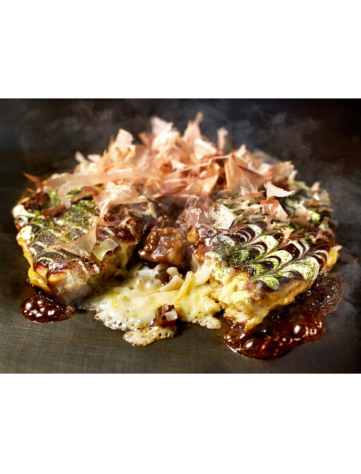 大阪千日前にて1973年創業のお好み焼の名店「千房」。千房オリジナルのお好み焼ミックス粉を使いふっくらと焼き上げた豚肉・いか・えび・チーズ・牛すじこんにゃくの5種の具材が入ったボリューム感満点のお好み焼道頓堀焼に、宮崎県産黒毛和牛を贅沢にも具材に使った黒毛和牛お好み焼に、豚肉・いか・えび・牛す...
