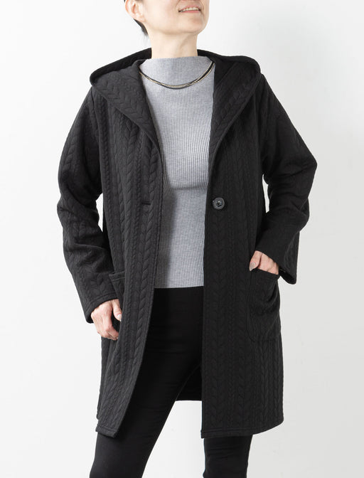 軽く羽織るだけで様になる、表情豊かな大人のカジュアルコーディガン。 暖かみのある立体的な編み柄が全身に施され、シンプルなインナーに羽織るだけで、奥行きのあるスタイリングが完成します。 暖かさ、デザイン、着回し力の三拍子が揃った、この冬手放せなくなるコーディガンです。