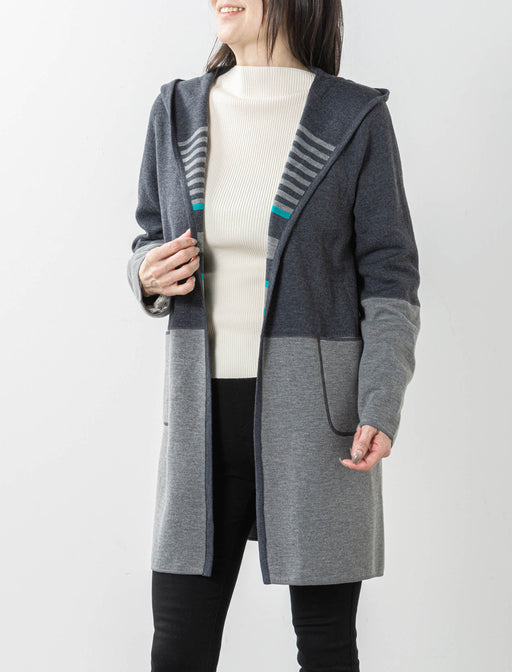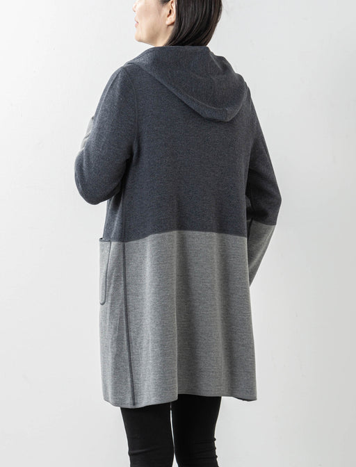 今日の気分で選べる、着回し力200%のニットコーディガン。 表裏で印象がガラリと変わり、まるで2着持っているかのようにコーディネートを楽しめます。 ニット素材ならではのふんわりとした暖かさと、コートよりも軽やかな着心地で、季節の変わり目から真冬の室内まで大活躍します。