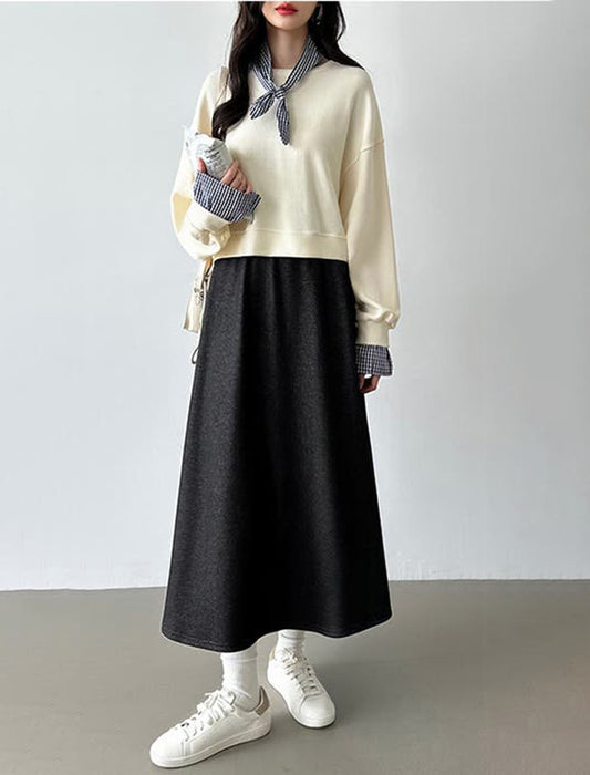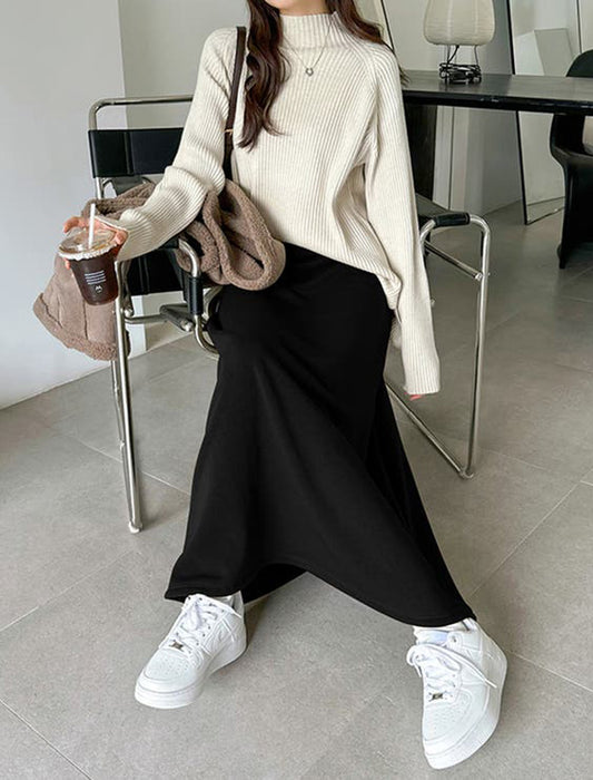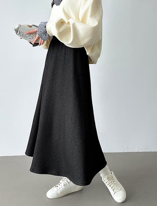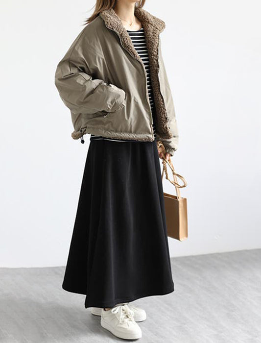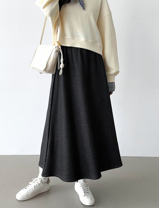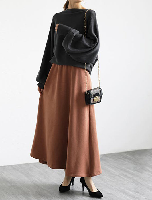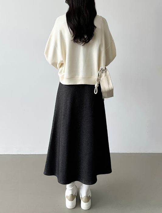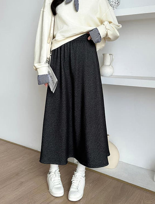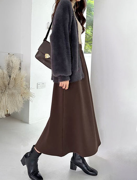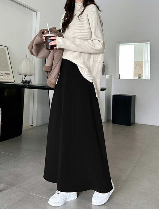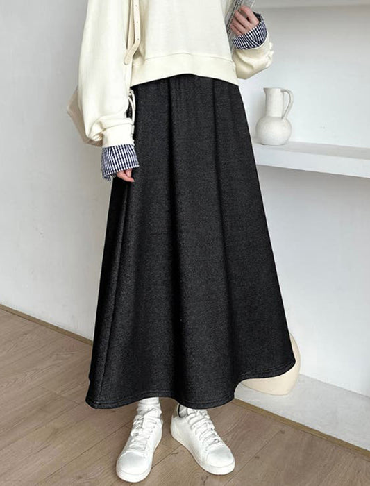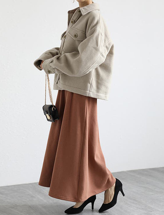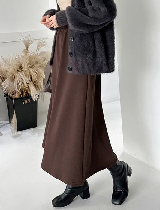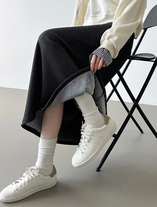 暖かさと快適さを両立させた裏起毛もこもこロングスカート。