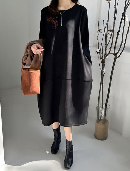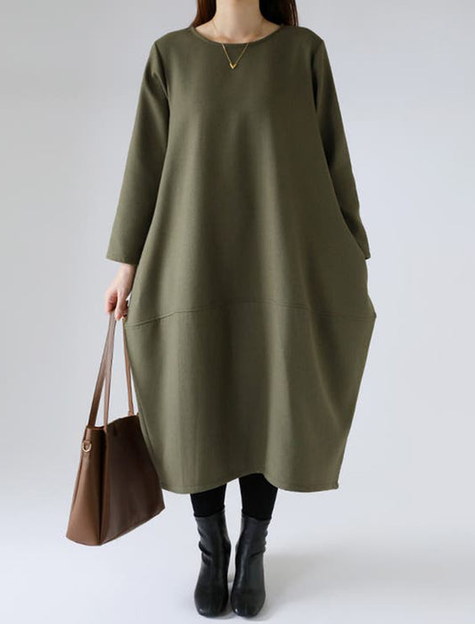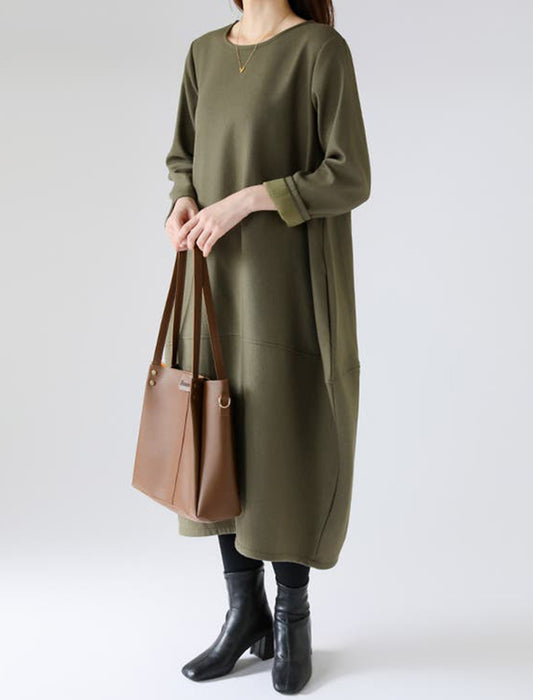 心地よさとスタイルを両立させた裏起毛 コクーンワンピース。