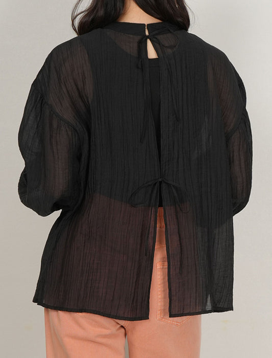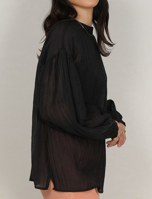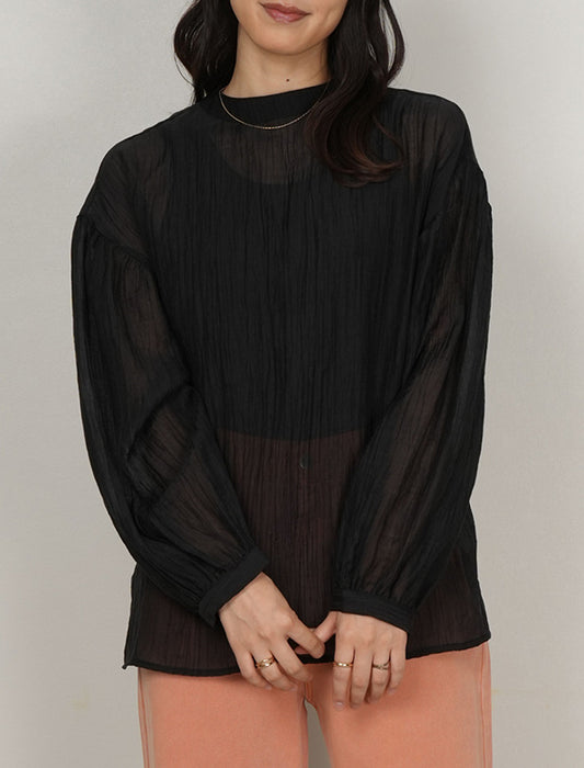 ドロップショルダーとボリュームのある袖が、ふわっとした魅力的なシルエットに。