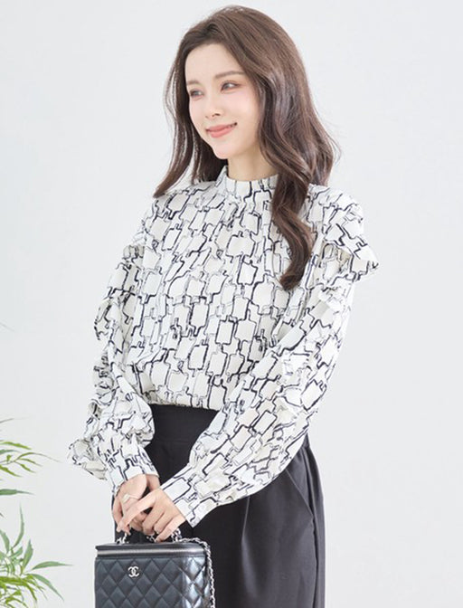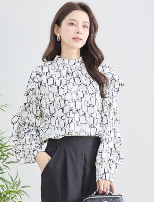 バルーンスリーブと裾フリルが織りなす、洗練と甘さのハーモニー。 アシンメトリーの波打つようなラインは、ふんわりとした軽やかさで女性らしい雰囲気に。 カジュアルからお出かけまで、幅広く活躍する一着に。