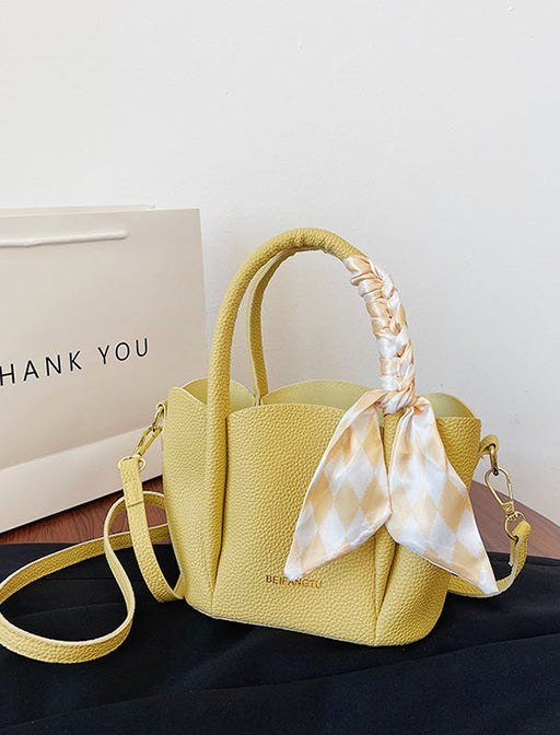 シンプルながらも華やかさを加えたデザインが魅力のスカーフ付き2WAYミニバッグ。<br>2WAY仕様で、ショルダーバッグとしても、ハンドバッグとしても使えるので、スタイルや用途に応じた使い方が可能です。<br>インナーポーチも付いており、小物を整理して収納できるので、使...
