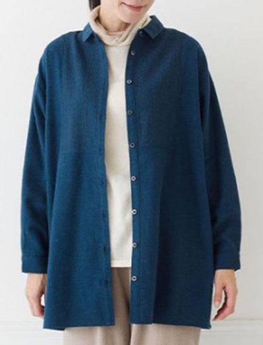 スキッパーカラーが首元をすっきりと引き締め、首元のディテールが女性らしさを引き立てます。<br>素材感は軽やかで、柔らかく肌触りの良い生地を使用。<br>全体的にゆったりとしたシルエットで、リラックスした着心地。