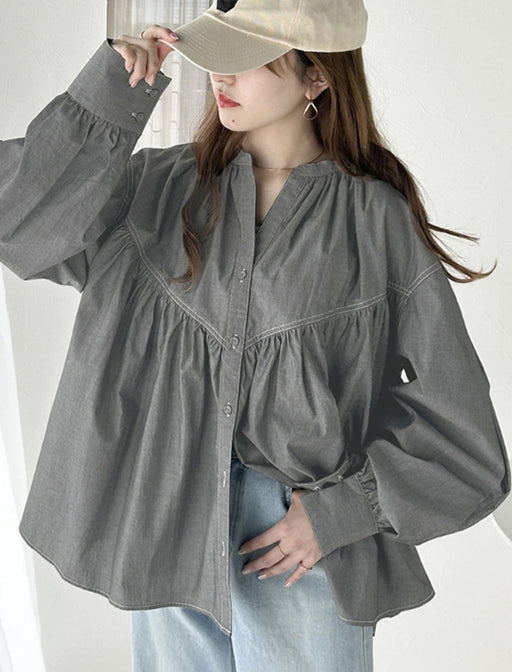 たっぷりとしたギャザーが生み出すふんわりシルエットが魅力のビッグシルエットシャツ。前を開けて羽織としても、ボタンを留めてトップスとしても◎シンプルなボトムスと合わせるだけで、こなれたスタイルが完成します。