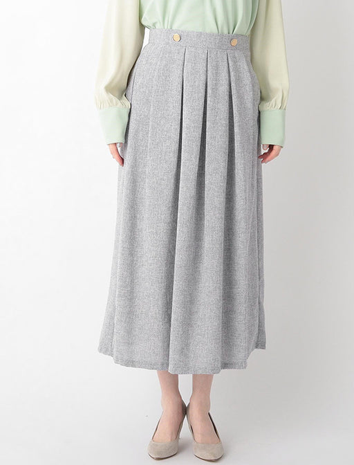 ウエスト部分にゴールド釦を施したハイウエストのツイードスカート。<br>タック入りでふんわり感がありつつ、程よい広がりを持つストレートなシルエットが快適な着心地を提供します。<br>フェミニンでフォーマルなデザインなので、入園式や卒業式、授業参観などの様々なイベントにも...