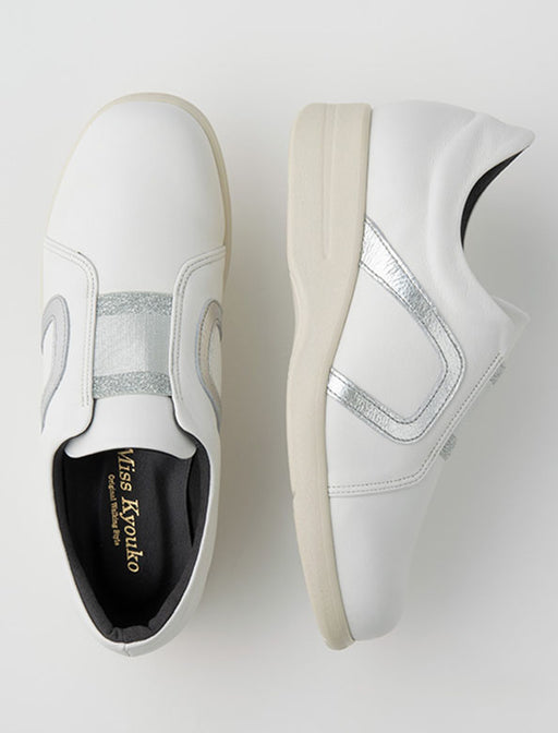 光沢感のあるやぎ革を使用したサイドラインと、アッパー部分に施されたラメゴムが特徴的なスリッポン。<br>シンプルながらも華やかさを加え、カジュアルながらも上品な印象を与えるデザインです。<br>足元にアクセントをプラスしたい方にぴったりの一足です。