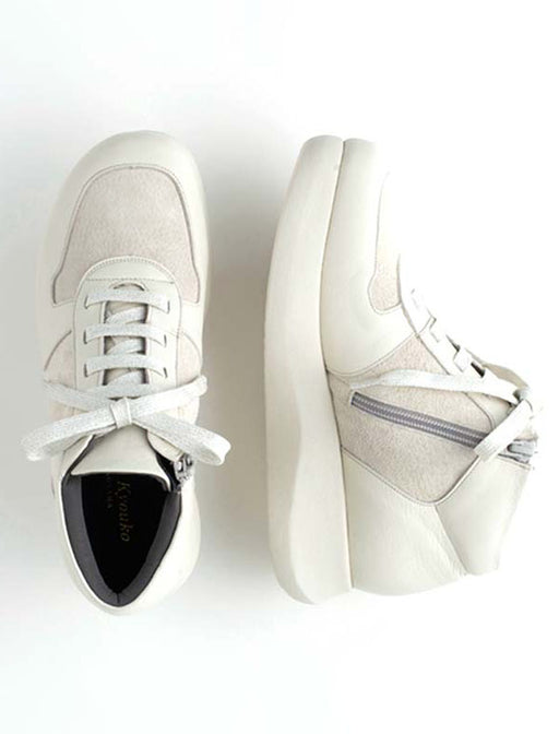 内側にファスナーが施されたタルトソールのハイカットスニーカー。<br>牛革と豚革、2種類の本革を贅沢に使用し、耐久性と高級感を兼ね備えています。<br>足首周りにはクッションが内蔵されており、快適な履き心地を提供します。