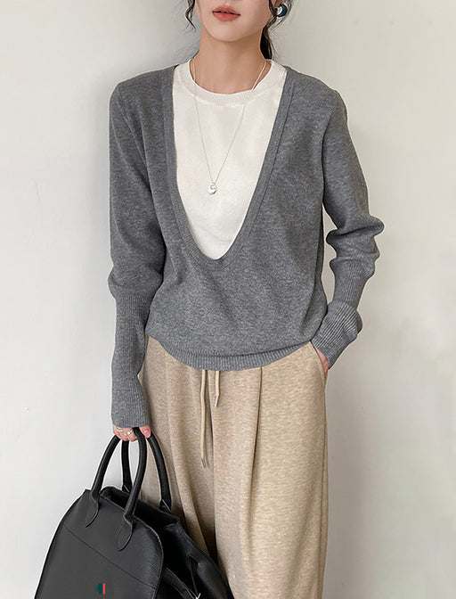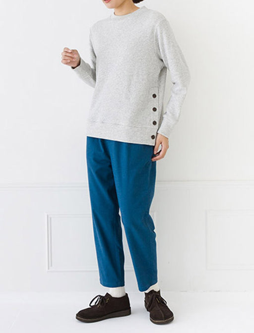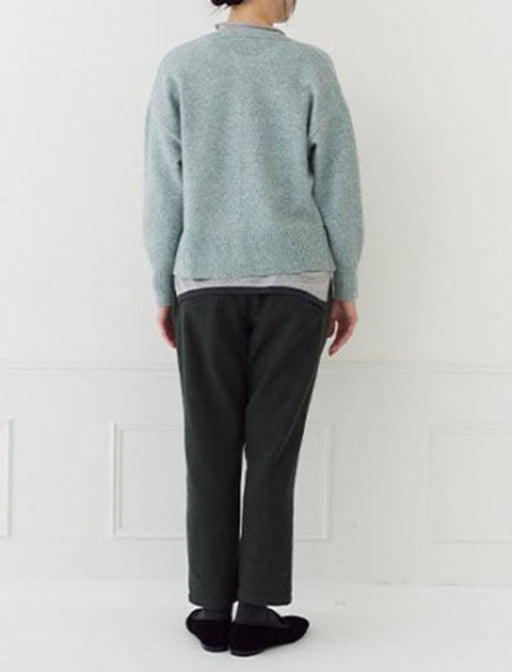 胸元にさりげないデザインを施したラウンドネックプルオーバー。 顔まわりをやわらかく見せ、上品な印象に。 シンプルながらポイントになるディテールが魅力の一枚です。