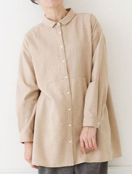 洗練されたシルエットと機能性を兼ね備えたデザインシャツブラウス。 エプロン部分は取り外し可能で、カジュアルからフェミニンまで様々なコーディネートに活躍。 肌に優しい100%綿素材は、一日中快適に着用いただけます。
