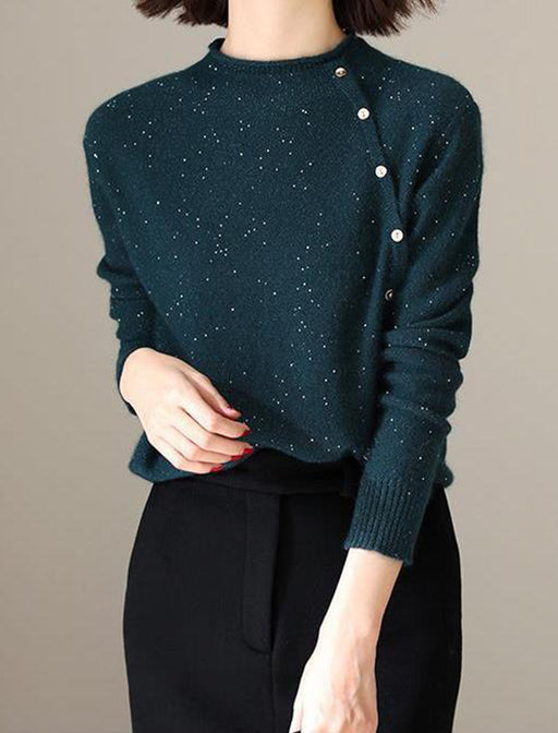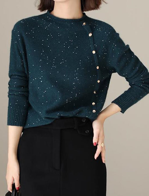 上品なレースをあしらった、Vネックニット。 深めの開きが気になる方にも、レースが胸元をさりげなくカバーしてくれるので安心です。 前立てに並んだパールボタンがアクセントになり、カーディガン風に見えるデザインも魅力。 大人の女性にうれしい、上品さと着やすさを兼ね備えた一枚です。