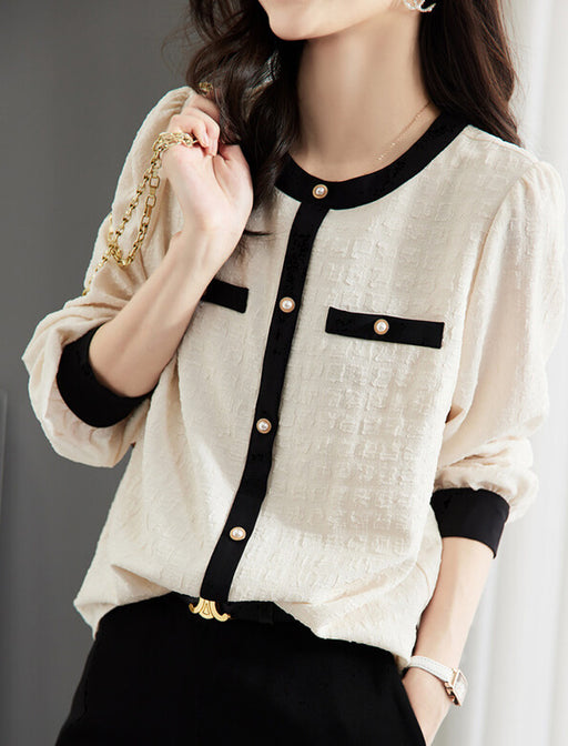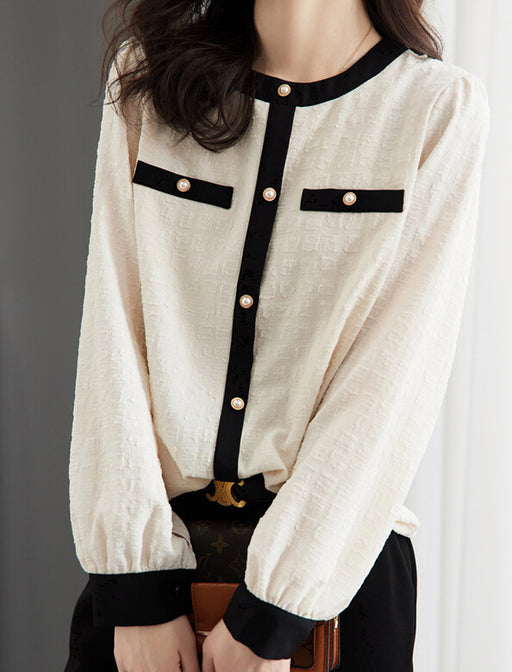 光を受けてきらめく、主役級の華やかさ。上品な織り柄を楽しむ高見えトップス。 特別な日にも、日常のさりげないおしゃれにも。 着映えする繊細な素材感が、大人の女性の装いに上質な華やかさを添えます。