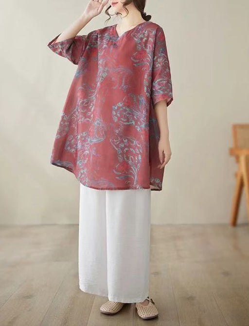 程度な落ち感の素材にかすれたボヘミアンプリントが特徴の軽やかなチュニック。 袖口や身頃に多数のタックを施し、立体的なシルエットに仕上げました。 お揃いのボヘミアンパンツと合わせて、グッと華やかなセットアップコーデに。