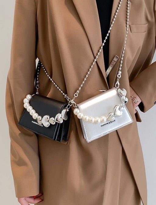 アクセ感覚で華やかさをプラスできるミニミニバッグ。 取り外し可能なショルダーストラップ付きで、ハンドバッグにもショルダーバッグにも気分に応じて使い分けできます。 結婚式やパーティーなど、パールの上品な輝きがドレス映えを後押しします。